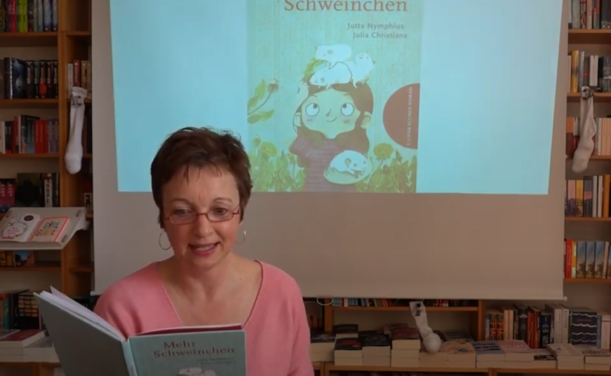 Zusammen mit ihrem Mann, den drei Kindern, der Katze Emma und den beiden Meerschweinchen Frieda und Franzi lebt Jutta Nymphius am Stadtrand von Hamburg. Sie hat schon viele tolle Kinderbücher geschrieben und kann derzeit nicht zu uns kommen. Jutta Nymphius hat daher einige Videos mit dem Tulipan Verlag aufgenommen. Hier nun Teil 1 aus ihrem neuesten Kinderbuch "Mehr Schweinchen".